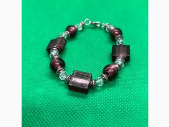 Hematit/granat fasett armband med Aum, elastiskt, 5 mm