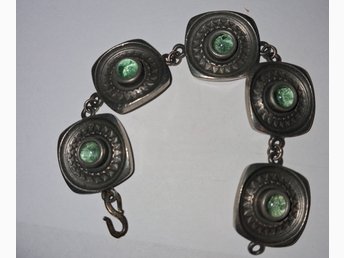 Vintage Armband med Grön Sten, Rune Tennsmed, 28 cm lång