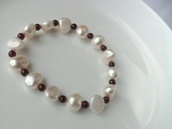 Granat och rosenkvarts, armband med hjärtberlock, 8 mm pärlor