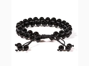 Armband svart agat dubbelradigt justerbart, 6 mm pärlor