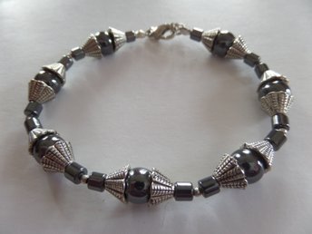 PÄRLARMBAND AV ÄKTA HEMATIT OCH TIBETSILVER
