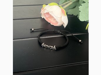 Svart Reglerbart Armband med Strassdetalj Bokstav G