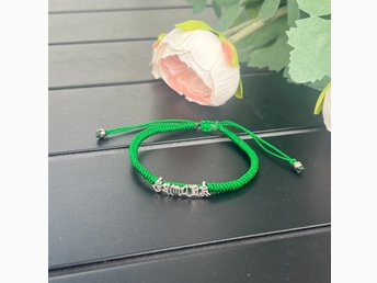 Handgjort tibetanskt flätat grön armband med Om Mani Padme Hum-berlock.