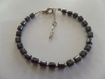 ARMBAND AV ÄKTA HEMATIT, MED EN LITEN FJÄDER I KEDJA.