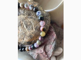 LYXIGT HANDGJORT UNISEX STÖRRE ARMBAND ÄKTA REGNBÅGS TURMALIN HÖG AA++ Kvalitet