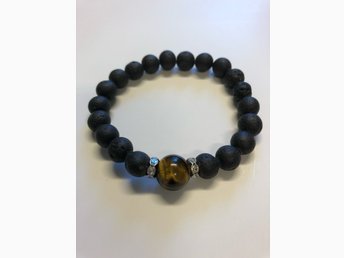 Mycket fin elastisk armband med naturlava och kvartsmineral tiger öga.