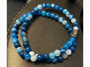 Armband med blå pärlor gummiband dubbel