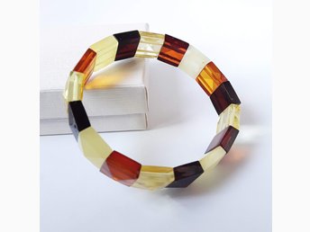 Bangle stil Bärnstensarmband tillverkat av baltiska bärnstensbitar i pyramidform