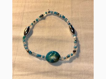 Blått, vitt armband