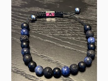 Armband med svarta och blå stenar dragband