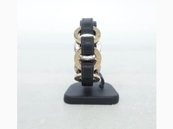 BVLGARI armband Doppio Tondo Multi Charm 33914 Black Leather Metal Women's