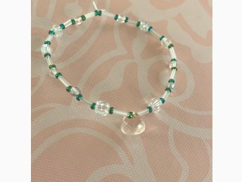 Armband i metall och gröna pärlor