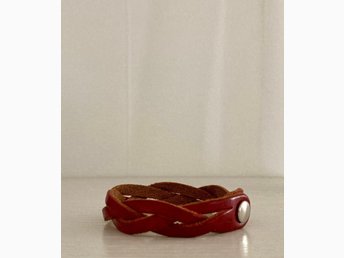 RÖDBRUNT FLÄTAT LÄDERARMBAND.