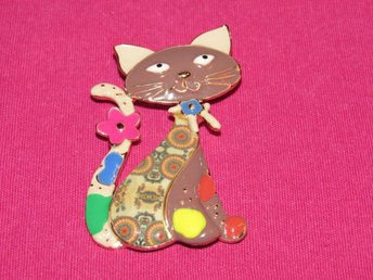 Brosch med katt av emalj/zinklegering.
