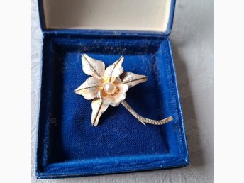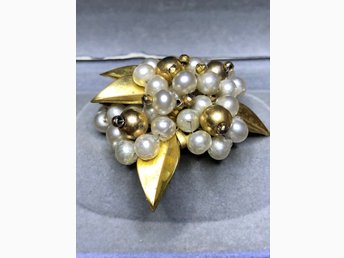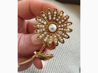 Vintage äldre guldfärgad Brosch med pärlor 50/60 tal från dödsbo