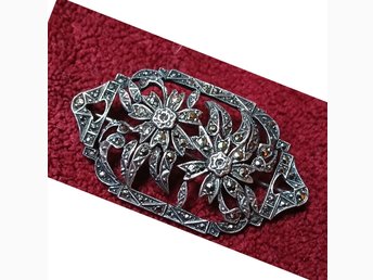 Vintage brosch i silver med markasiter