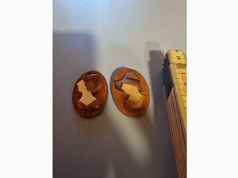Två brocher i teak