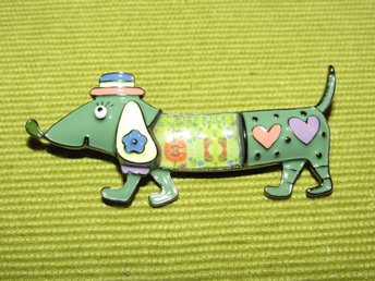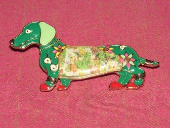 Brosch med hund/tax av emalj/zinklegering.