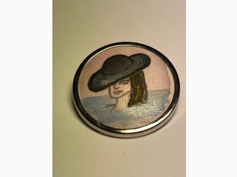 Brosch föreställande en kvinna med hatt