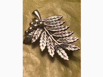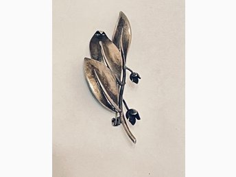 Vintage vacker silverbrosch i form av en löv med bär/ stämplat: 925.
