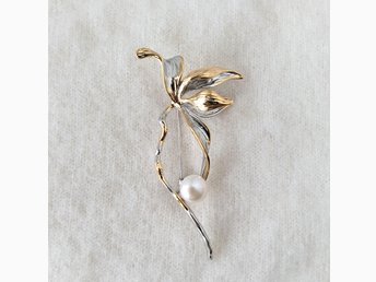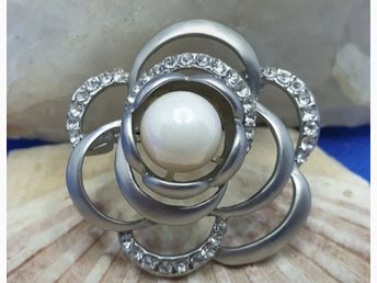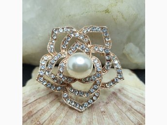 Brosch - Vacker Kamelia Blomma med stor pärla