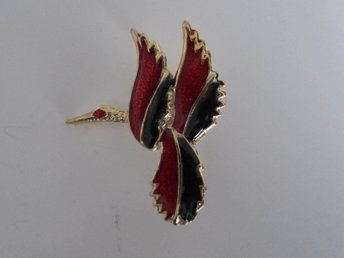BROSCH - FLYGANDE FÅGEL - GULDFÄRGAD MED EMALJ