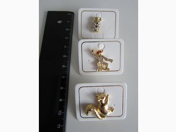 BROSCHER/PINS - UGGLA - APA - EKORRE - GULDFÄRGADE MED STRASS
