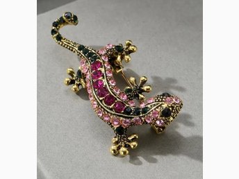 Färggrann och glädjande brosch : Gecko-ödla