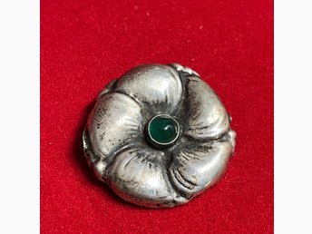 Jugendstil brocsh i silver & gröna stenar stämplad 830, troligen Danmark