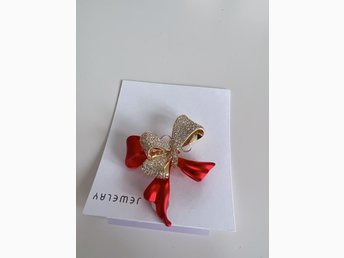 Röd och guld brosch