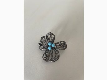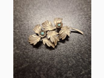 Vintage silverbrosch med turkoser 1960 tal