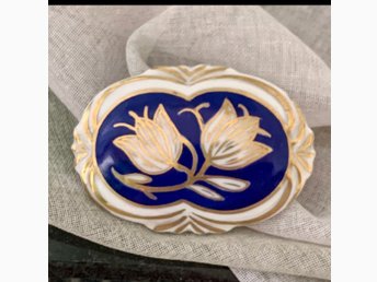 Antik porslinsbrosch Bareuther Bavaria FINT SKICK brosch porslin guld handmålad