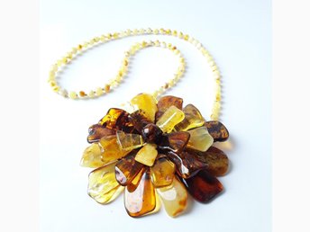 Baltisk bärnsten Blomsmycke-halsband-brosch, brun ädelsten stora blommiga smycken