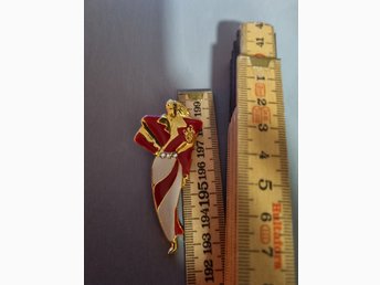 Röd, vit, guld brosch