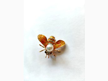 Flyga guldfärg pärla brosch