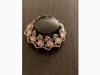 Brosch , metall och svart sten