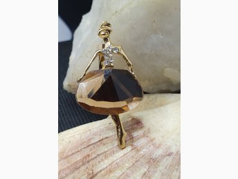 Brosch - Söt Ballerina med kristall i champagne