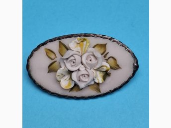 Unik Brosch i porslin mycket vacker och detaljrik! Vintage retro