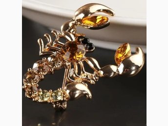 Skorpionen . Fin Guldfärgad Brosch med några fasettslipade syntetiska stenar