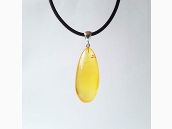 Klar baltisk bärnsten 925 silver ovalt hängsmycke halsband Gul ädelsten svart sladd