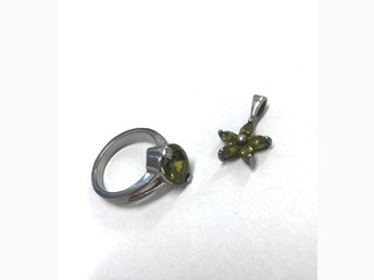 Silverhänge & ring med grön Sten