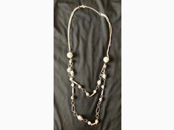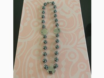 Silverfärgat, pärlvitt halsband