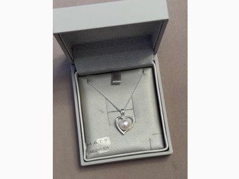 SilverHänge Äkta 925 Två Hjärtan med vita strass stenar Fint beg skick!