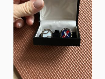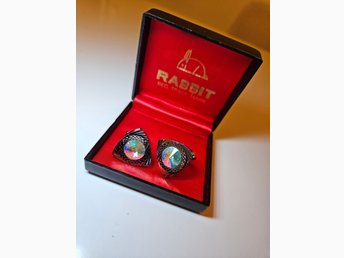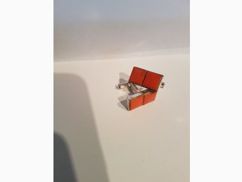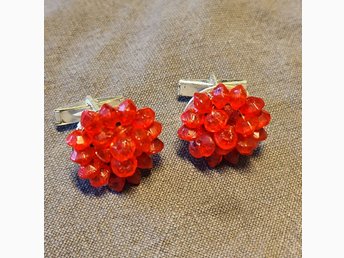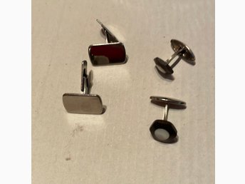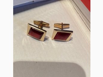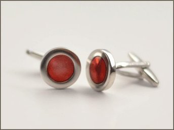 2 st manschettknappar röd silverfärgad metall - Helt nya!