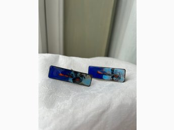 Manschettknappar emalj retro blå koppar smycke vintage hantverk skjortknappar