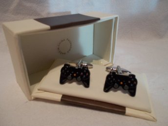 Manschettknappar i metall med handkontroller Play Station i ask.