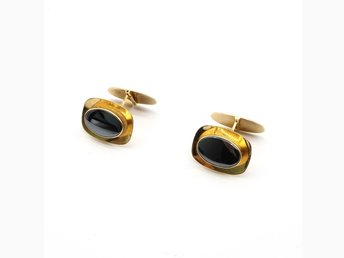 Manschettknappar i 18K guld, svarta stenar (vikt 9g)