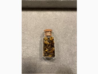 Liten flaska med tumlad tigeröga.