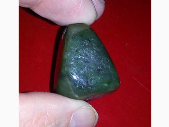 Trumlad jade med borrat hål. Ca 28g