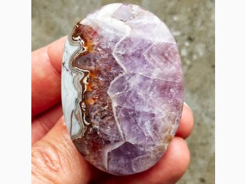 Ametist & Bandad Agat – Polerad Handsten / Samlarobjekt Mineral Kristall ca 41g
